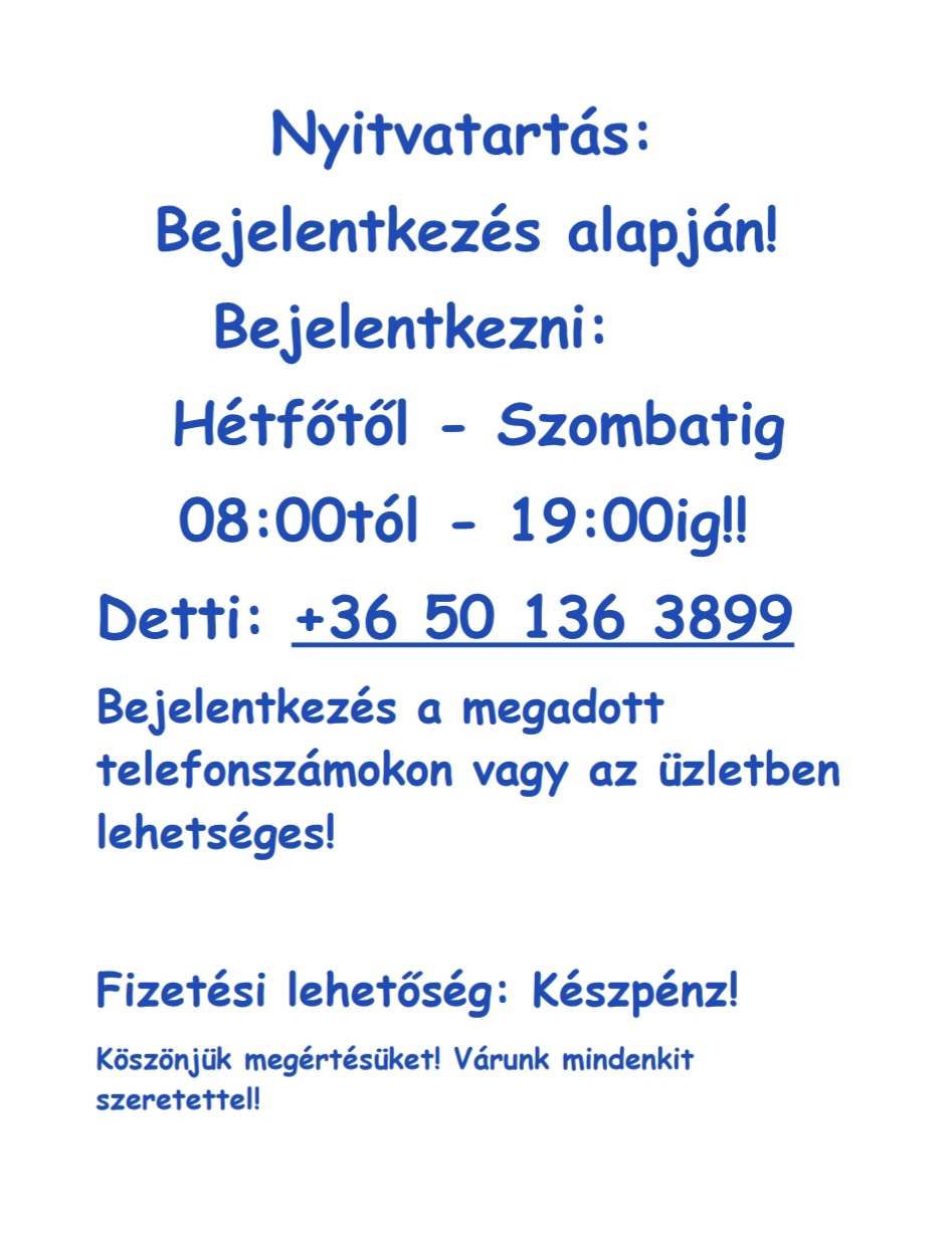 Bejelentkezni Hétfőtől - Szombatig 08:00-19:00ig tudtok a megadott telefonszámon!